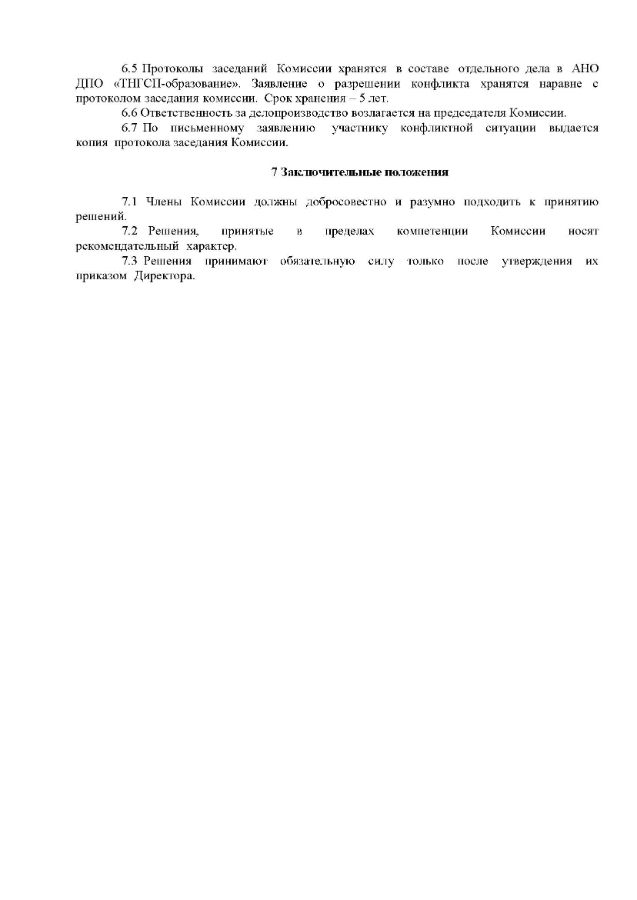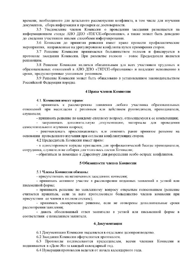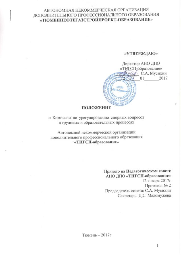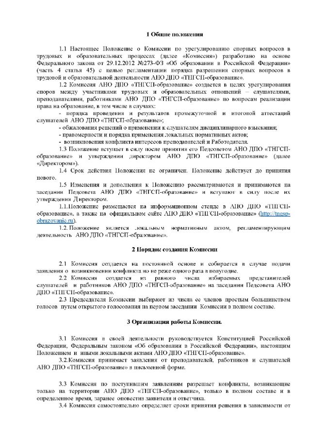 Положение о Комиссии по регулированию спорных вопросов в трудовых и образовательных процессах _____________________________