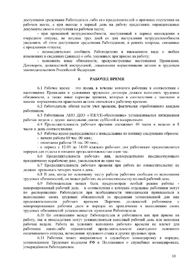 Правила трудового распорядка